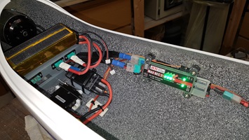 Altes Fahrwerk also raus, Öffnung zu laminieren und ein neues FEMA EZF für FES-Antriebe geordert. Den Spant habe ich mir bei Tangent besorgt und der dann ausgewählte Antrieb bei Torcman der dann mit den 2x5000 6S Akkus seine Arbeit verrichten sollte.