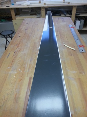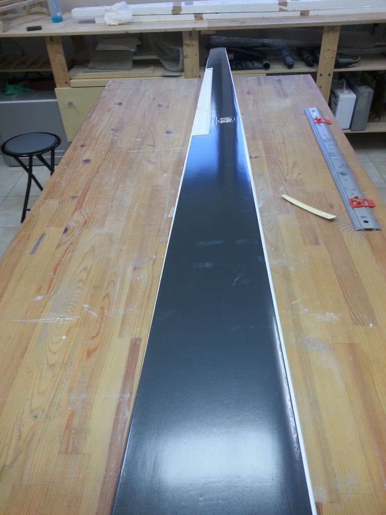 Nachdem die Folie der Tragflächen entfernt wurde, konnte man sehen dass die Ansteckflügel nur sehr einfach an der Hauptfläche angeklebt wurden. Sie hatten zur Fläche hin zu wenig Stabilität und führten ein dementsprechendes Eigenleben. Die Ansteckflächen wurden abgetrennt und mit einer stabileren Steckung versehen. Im Anschluss wurde die Linie der QR auf diese übertragen, so dass das Ganze wieder ein richtiges Bild gab.