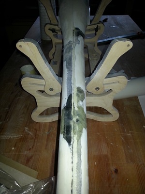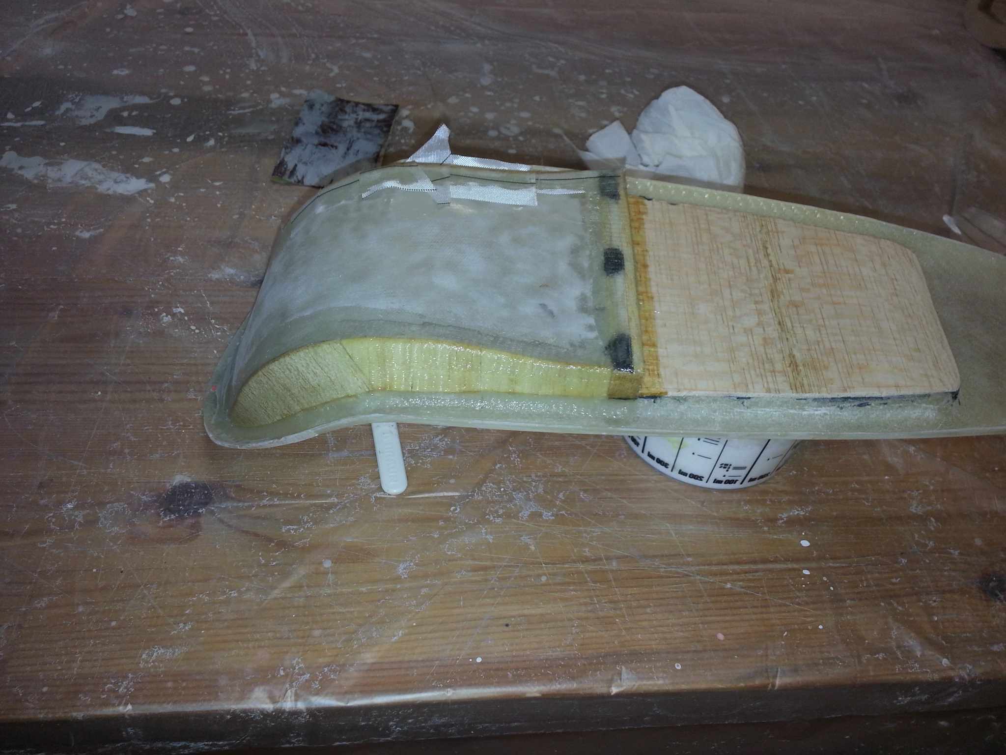 Im Anschluss daran habe ich den Rumpf an seiner Bruchstelle mit CfK-Matten so verstärkt, dass er wieder eine feste Struktur bekommt.