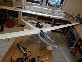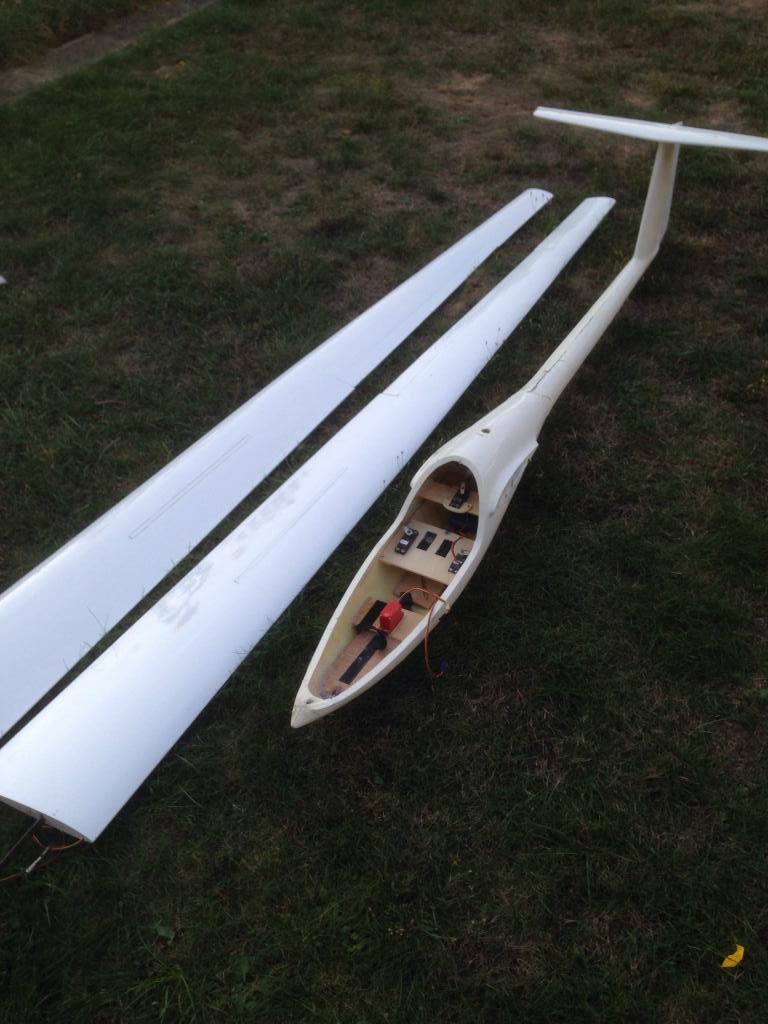 Um die Thermoflügel DG zu bekommen, musste ich fast bis Heidelberg fahren. Dort erwartete mich ein verunfallter Segler, bei dem der Rumpf beschädigt war und die Haube nebst Rahmen fehlte. Außerdem war eine Störklappe ohne Funktion, die es zu ersetzen galt.