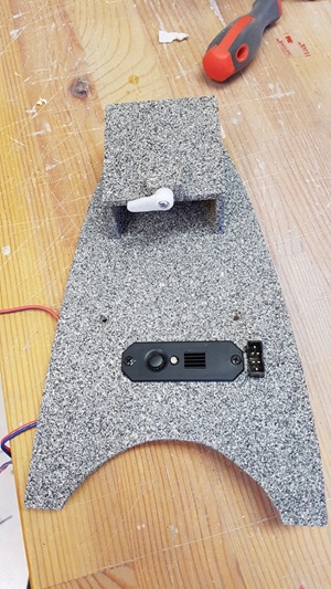Die Servos für QR und Störklappen sind in der Fläche untergebracht, das HR Sevo befindet sich in der Dämpfungsflosse (alle Hitec). Das Cockpit wurde ausgebaut, so dass auch ein Pilot Platz findet.