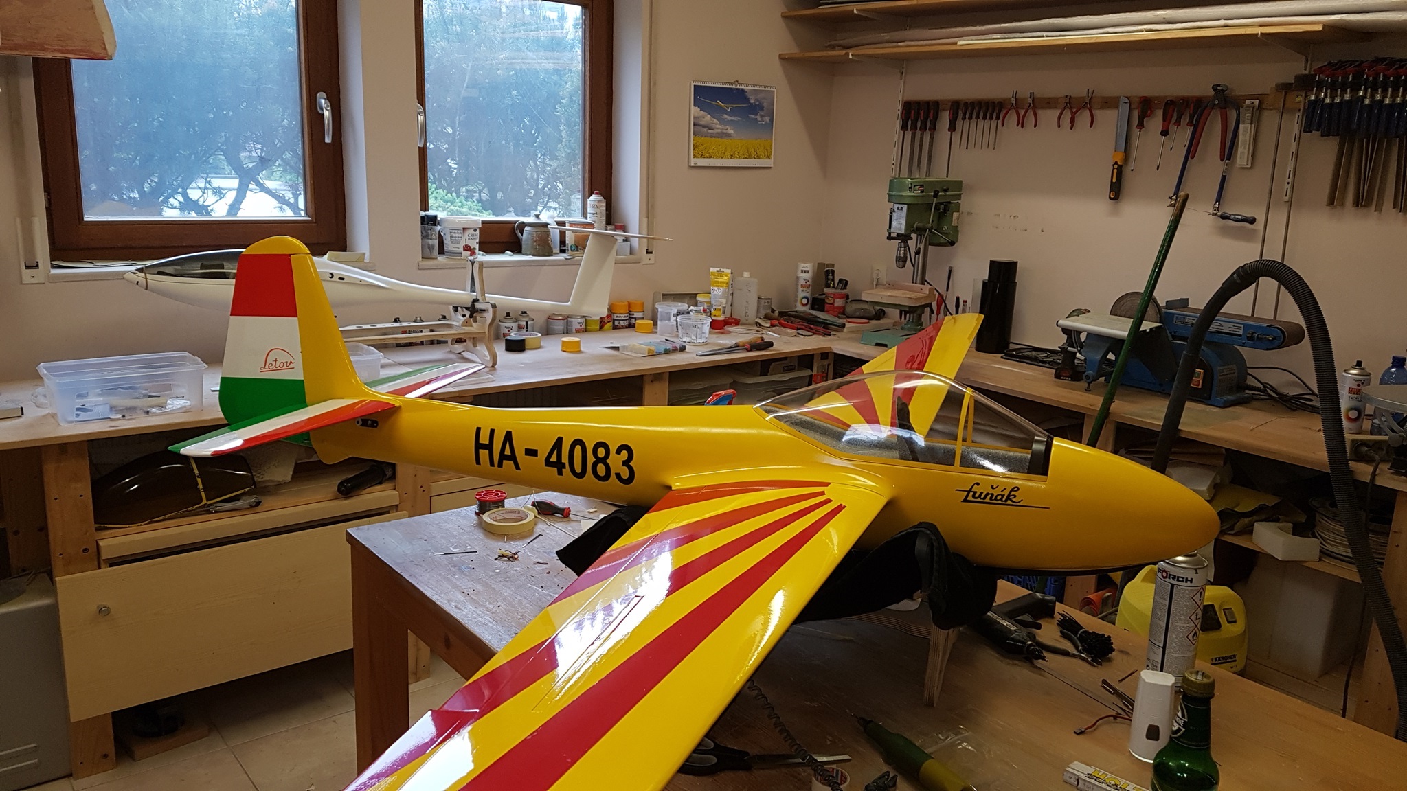 Der Lunak gehört zur Gruppe der Kunstflugsegler. Gekauft hatte ich ihn im April 2017 als Rohbau, will heißen, dass der Rumpf noch ein wenig aufgehübscht und das Leitwerk neu foliert werden musste. Die Kabinenhaube war in einem seltsamen Braunton eingefärbt und nach einigem Hin und Her habe ich dann eine neue besorgt, da ich einen Cockpitausbau vornehmen wollte. Platz dafür hatte es genug ....