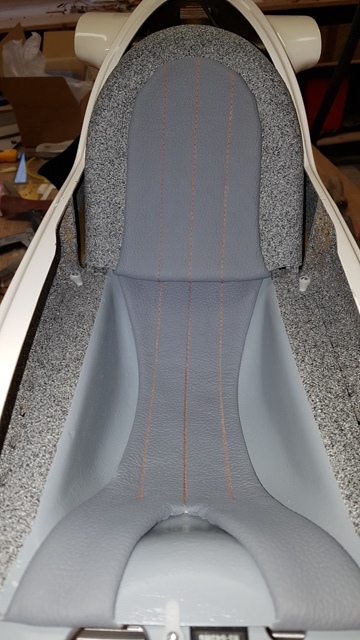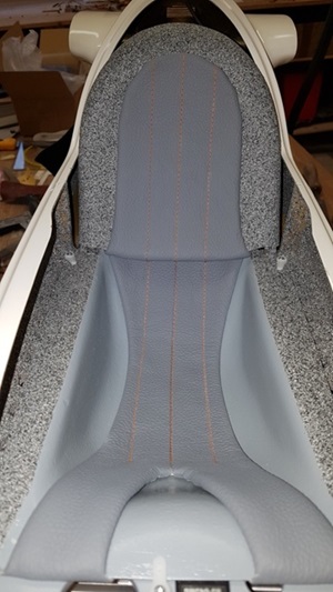 Die mitgelieferte Sitzschale mit Lehnewird angepasst bis alles sauber sitzt um im Anschluss einen Lack auftragen zu können. Später gibt es für die Lehne ein Lederpolster mit passenden Abnähern, die dann an den Instrumententräger angepasst wird.