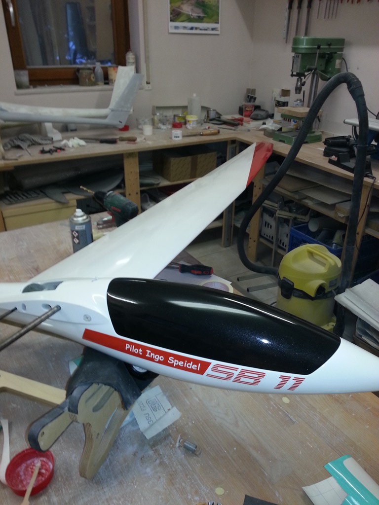 Von der SB 11 habe ich leider keine exakten Daten mehr, da ich diese restauriert habe und auch gleich einen Käufer gefunden hat. Der Fliegerkollege wollte einen Segler für den F-Schlepp und sollte in der 5kg-Klasse liegen.