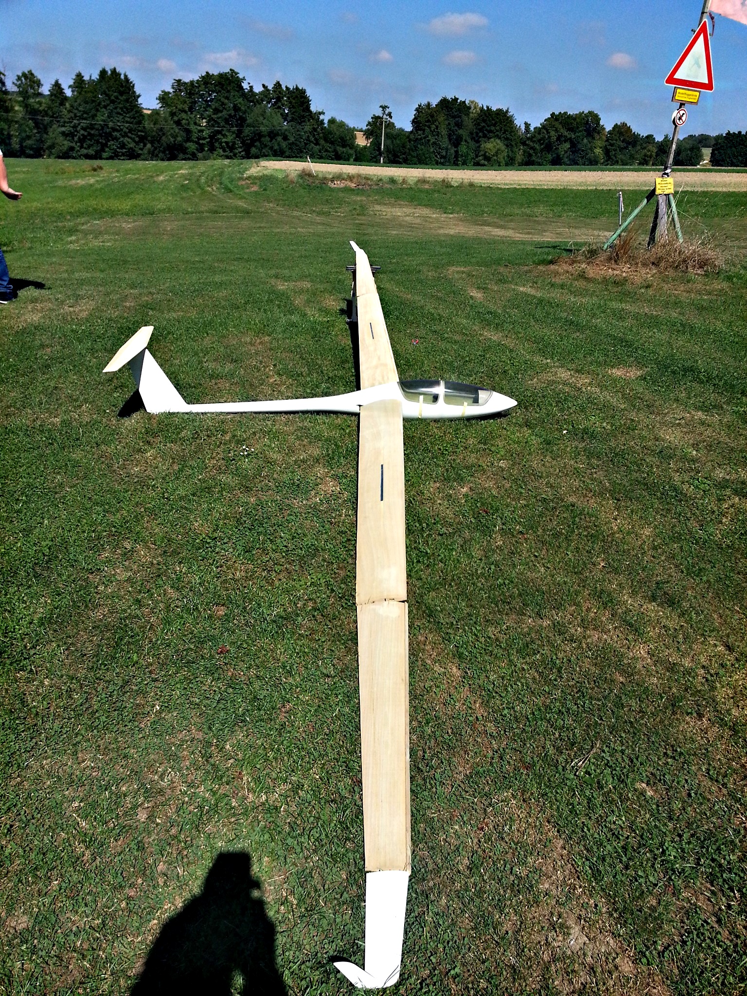 Die ASH 25 befindet sich derzeit leider noch im Rohbau. Im Sommer 2016 habe ich diesen Bausatz erstanden und wollte die ASH über den Winter fertig bauen. Leider musste ich feststellen, dass die Flächen beim verpressen der Beplankung zu viel Druck abbekommen haben und somit für mich unbrauchbar waren. Ein weiteres Manko dabei, lediglich Querruder und Störklappen waren vorgesehen und so wollte ich die ASH bei der Spannweite nicht aufbauen. Die habe ich dann bei einem Flohmarkt veräussert.