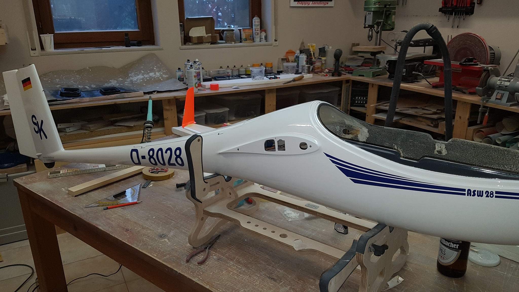 Diese ASH 31 von FC war der Prototyp des heutigen Full-Carbon Modells. Für mich war es eigentlich ein sehr günstiges Angebot von meinem Freund Wilfried. Der kam Anfang 2018 auf mich zu und fragte, ob man dem Modell einen passenden Antrieb für seine vorhandenen Akkus einbauen kann. Das ganze sollte dann noch eigenstartfähig sein und so machte ich mich an die Arbeit ....