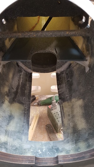Altes Fahrwerk also raus, Öffnung zu laminieren und ein neues FEMA EZF für FES-Antriebe geordert. Den Spant habe ich mir bei Tangent besorgt und der dann ausgewählte Antrieb bei Torcman der dann mit den 2x5000 6S Akkus seine Arbeit verrichten sollte.