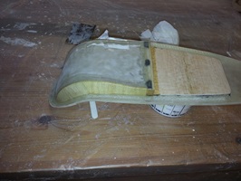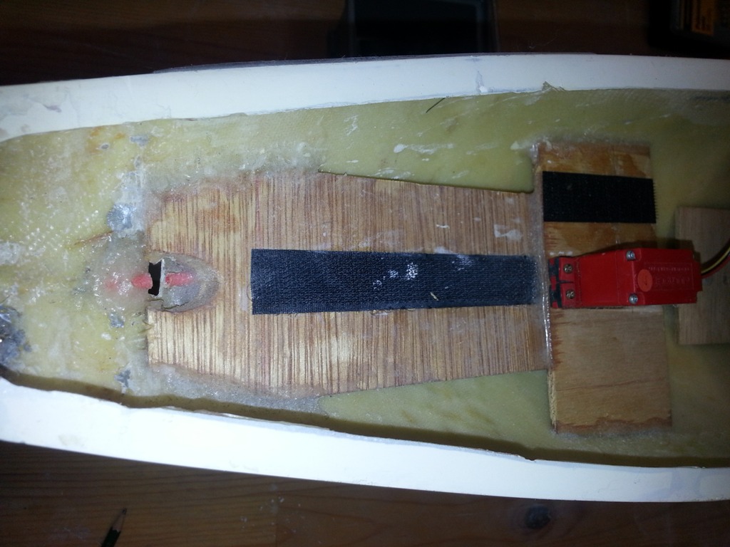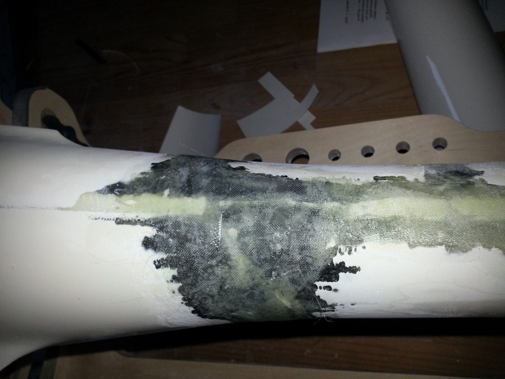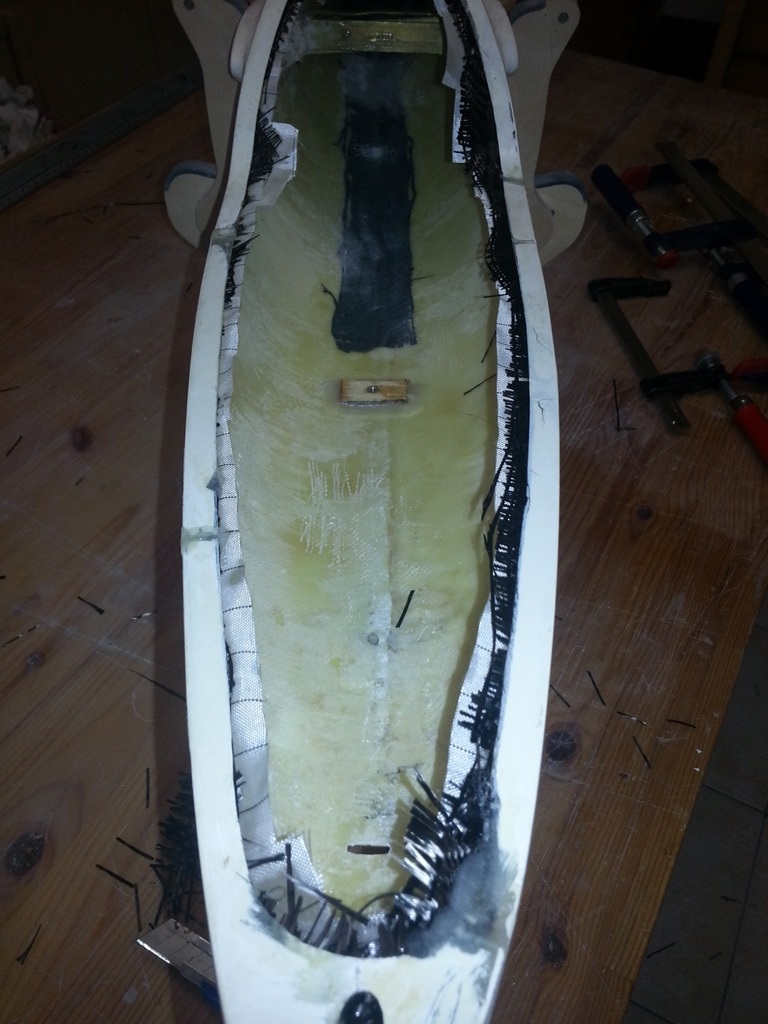 Im Anschluss daran habe ich den Rumpf an seiner Bruchstelle mit CfK-Matten so verstärkt, dass er wieder eine feste Struktur bekommt.