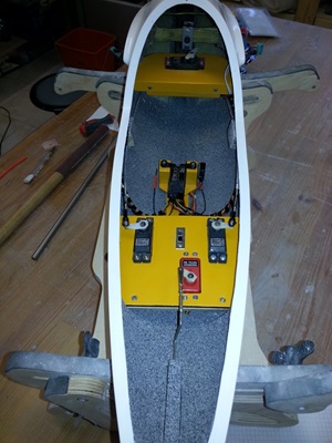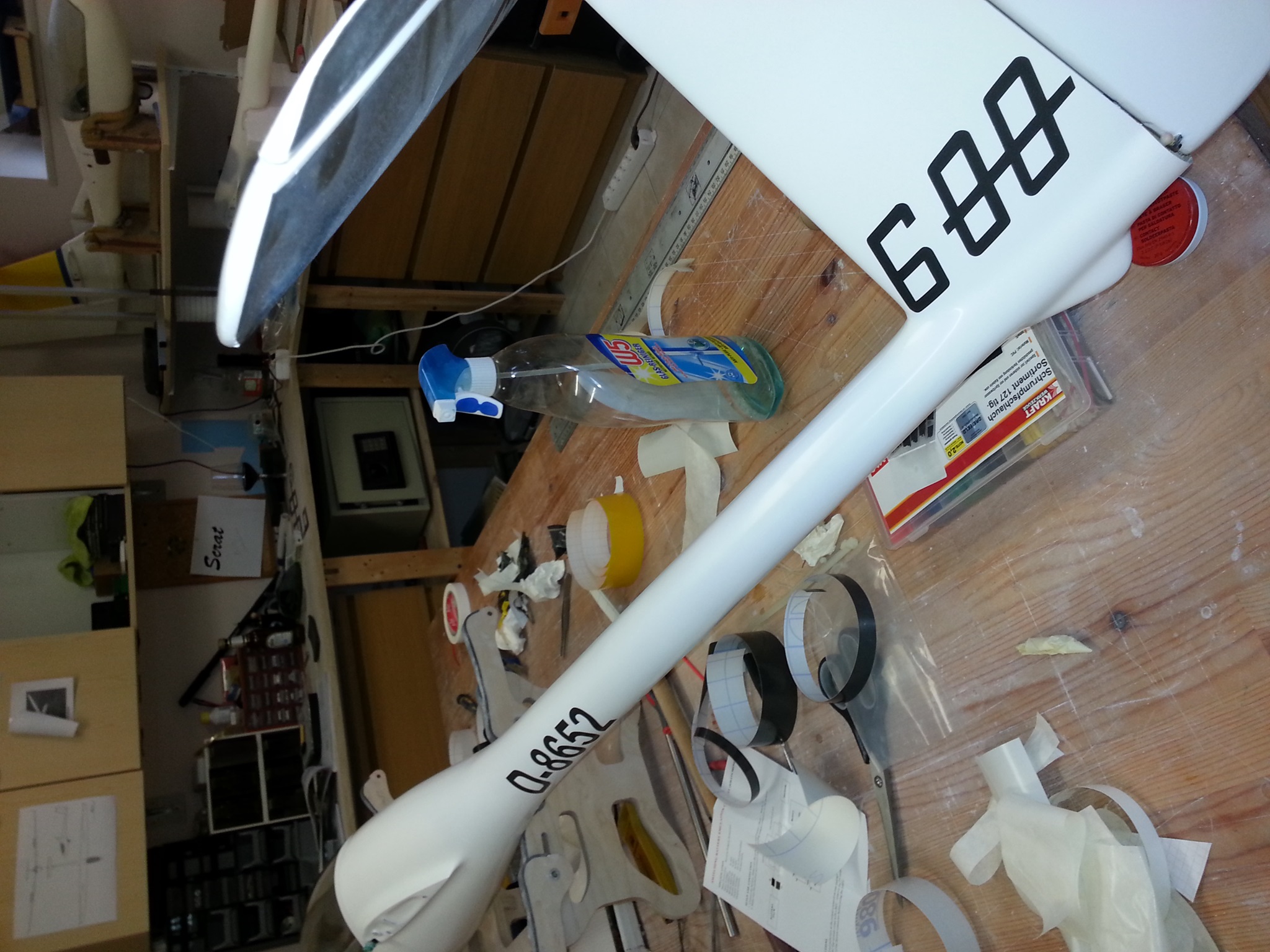 Um die Thermoflügel DG zu bekommen, musste ich fast bis Heidelberg fahren. Dort erwartete mich ein verunfallter Segler, bei dem der Rumpf beschädigt war und die Haube nebst Rahmen fehlte. Außerdem war eine Störklappe ohne Funktion, die es zu ersetzen galt.