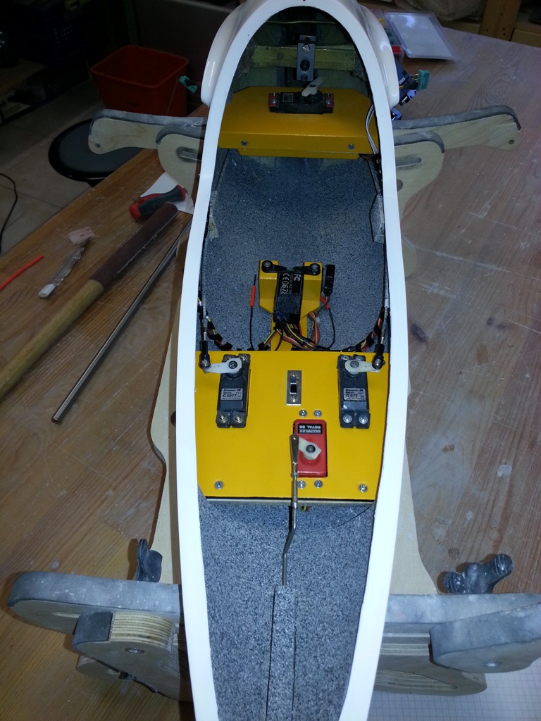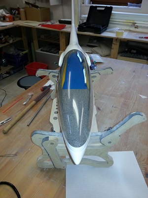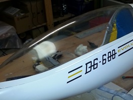 Von der Fa. Thermoflügel bekam ich dann noch einen Haubenrahmen und eine Haube und diese wurde dann am Rumpf angepasst. Der Rest belief sich dann noch auf Lackierung, Flächen bekleben und zum Schluss das Deko-Material aufbringen.