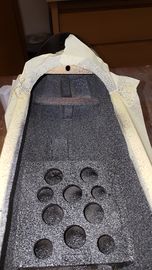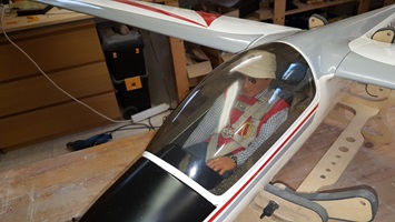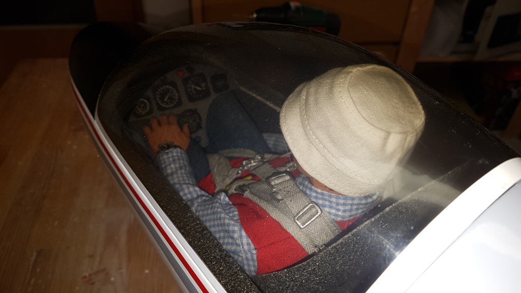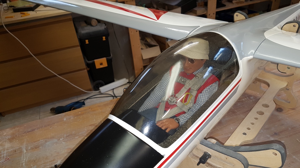 Die Servos für QR und Störklappen sind in der Fläche untergebracht, das HR Sevo befindet sich in der Dämpfungsflosse (alle Hitec). Das Cockpit wurde ausgebaut, so dass auch ein Pilot Platz findet.