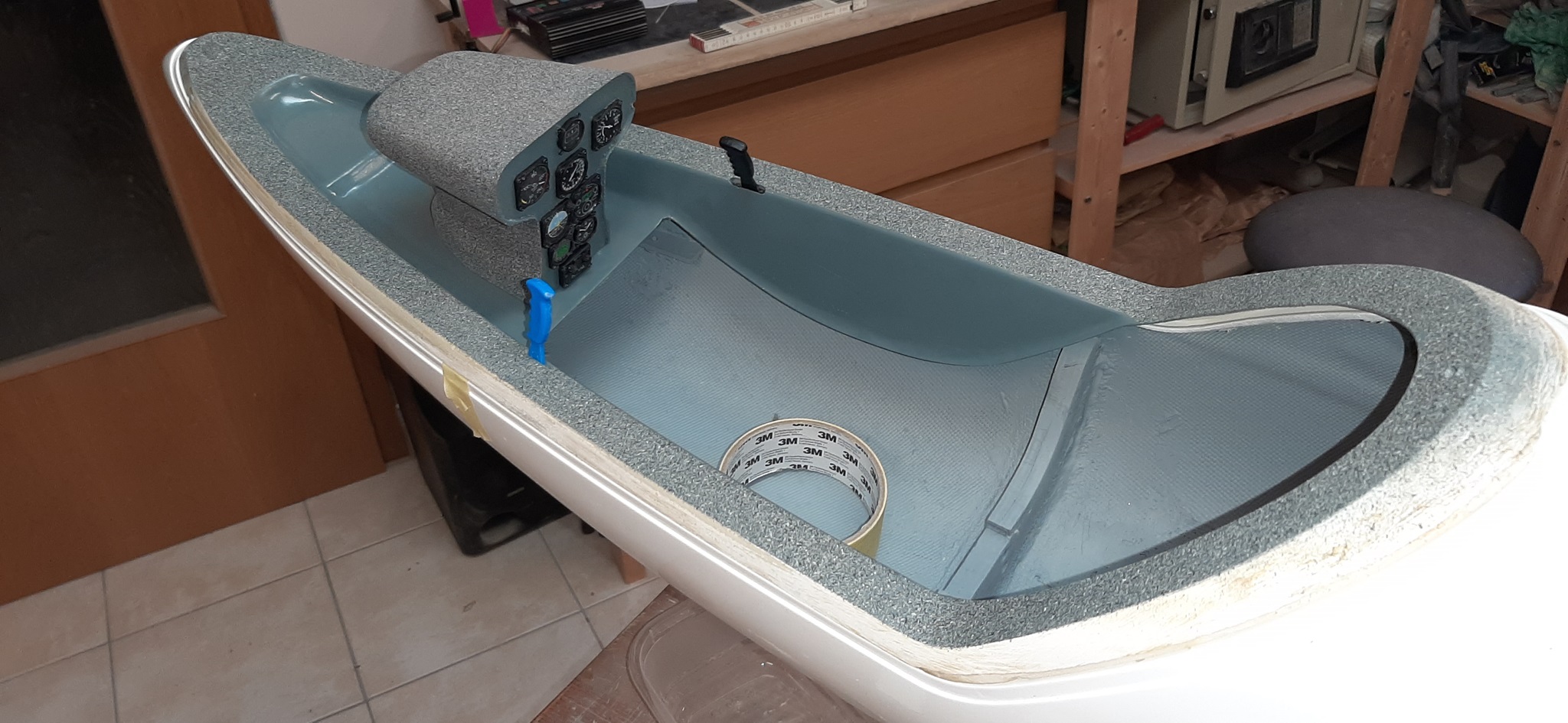 Also flugs ins Auto eingeladen und erste Einblicke verschafft. Es brauchte neue Servos, eine neue Kabinenhaube und sonstige Kleinigkeiten.