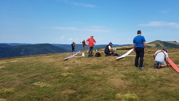 Aufbauen und fliegen - der Thermik XXXL (den ich von Wilfried leihweise bekommen habe), Wilfrieds Bald Eagle und die FS 5000 ...