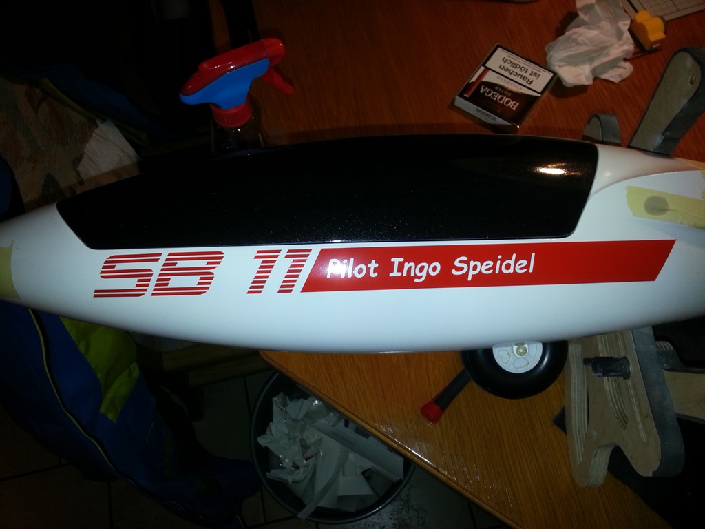 Von der SB 11 habe ich leider keine exakten Daten mehr, da ich diese restauriert habe und auch gleich einen Käufer gefunden hat. Der Fliegerkollege wollte einen Segler für den F-Schlepp und sollte in der 5kg-Klasse liegen.